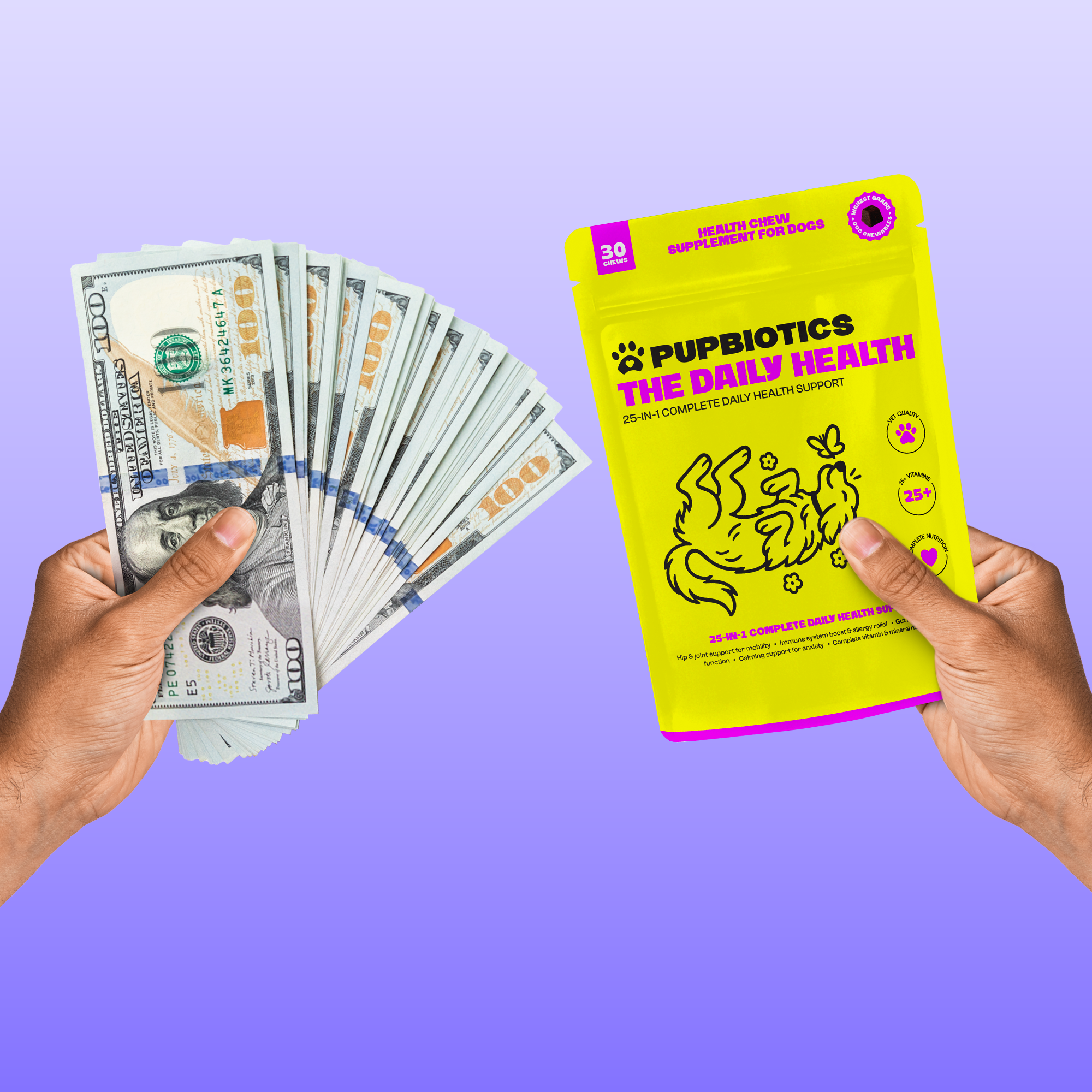 Summary: You can now transform your dog's overall health right from home without all the empty promises, expensive vet visits, and watching them decline! PupBiotics is simply the most successful (and Vet Approved) daily multivitamin ever made with 25 natural vitamins all in ONE chew. Keep reading below to learn more!